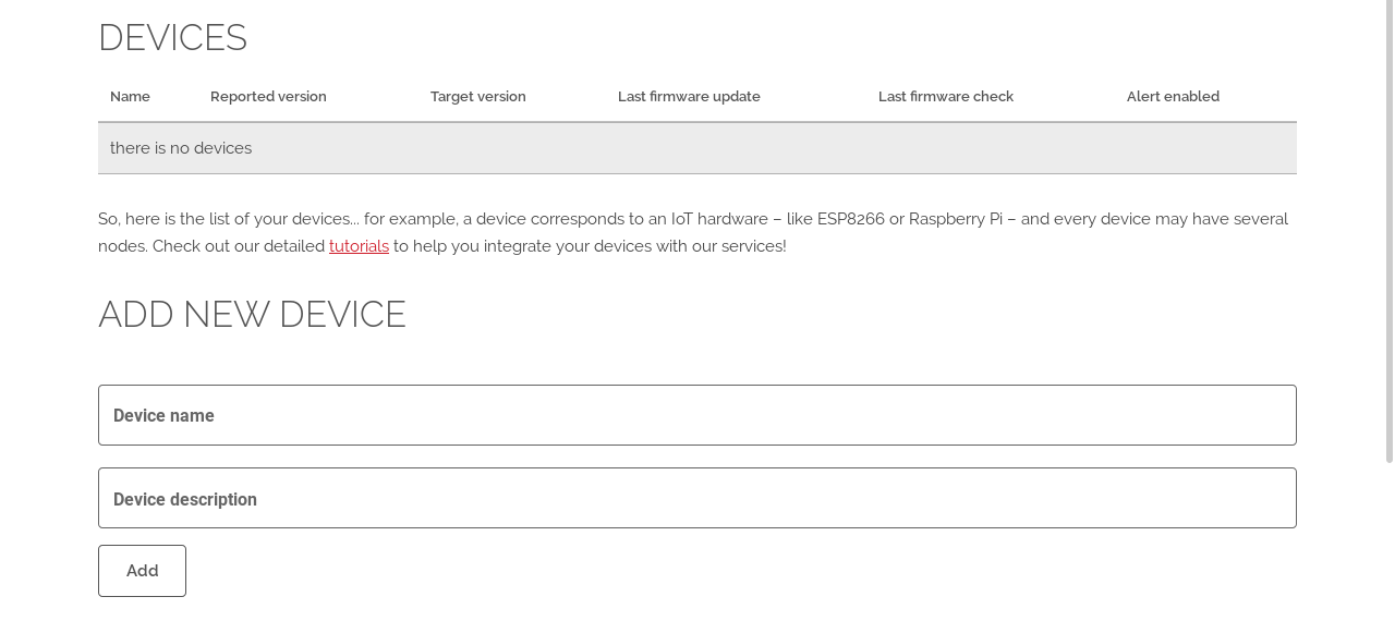 In our terminology, a device corresponds to an IoT hardware – like ESP8266 or Raspberry Pi – so that, the device is the entry point of your journey with our services.