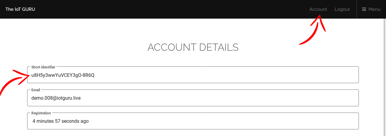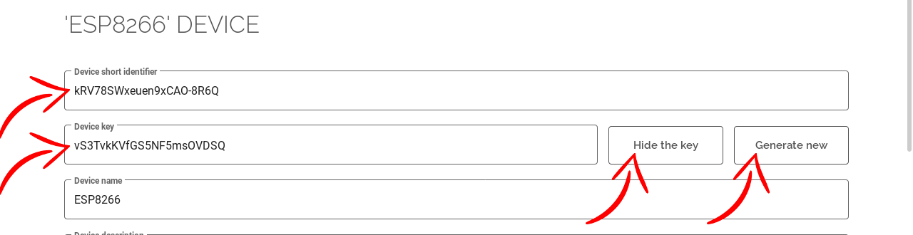Also, you will need the short identifier and the key of one of your devices, locate it.